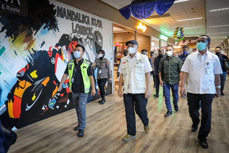 Menteri Koperasi dan Usaha Kecil Menengah (UKM), Teten Masduki meninjau kesiapan beberapa lokasi pameran pelaku UMKM di ajang MotoGP Mandalika 2022, di Lombok, NTB, Rabu (12/1/2022).(Dok. Kemenkop UKM)