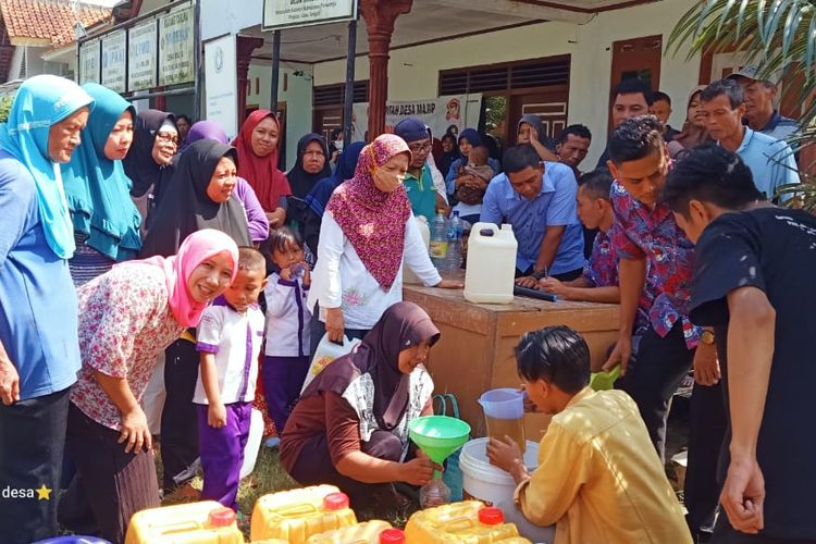 Widuri berkolaborasi dengan desa-desa menggelar pasar minyak goreng curah murah di Kabupaten Purworejo, Jawa Tengah pada Selasa (11/7/2022). (KOMPAS.com/BAYU APRILIANO)