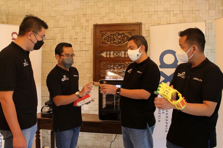 Leonardo Kurniawan (Head of 3D Printing Business Consumer & Commercial Segment), Widi Triwibowo (Direktur PT Astra Graphia Tbk dan Presiden Direktur PT Astragraphia Xprins Indonesia), K. Teguh Santoso (Direktur PT Astragraphia Xprins Indonesia), serta Wahyu Adhi (Head of 3D Printing Business Industrial Segment) saat peluncuran produk 3D printer di Jakarta, Rabu (13/7/2022).(dok astragraphia)