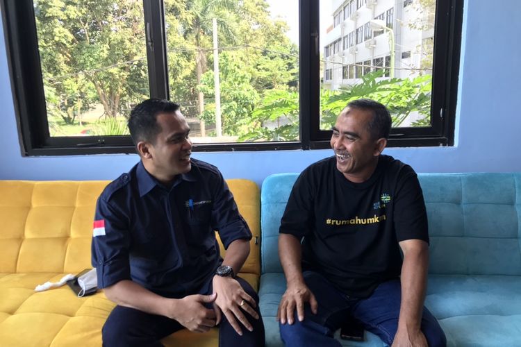 Asisten Deputi Pengembangan Ekosistem Bisnis Kementerian Koperasi dan Usaha Kecil Menengah (UKM), Irwansyah Putra; dan Koperasi dan UMKM, Kepala Dinas Koperasi UKM Provinsi NTB Ahmad Masyhuri di PLUT NTB, Sabtu (16/7/2022).
