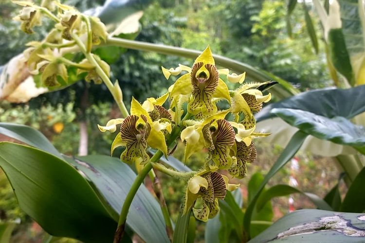 Salah satu koleksi anggrek milik Dwi Purwaningsih di rumahnya di kawasan Desa Giyombong, Bruno, Purworejo, Jawa Tengah pada Sabtu (23/7/2022). Ia membudidayakan dan menjual anggrek di rumahnya.