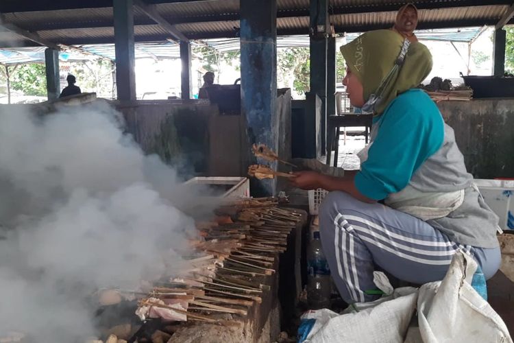 Penjual ikan asap di Pantai Tambakrejo, Blitar, Jawa Timur pada Senin (25/7/2022).