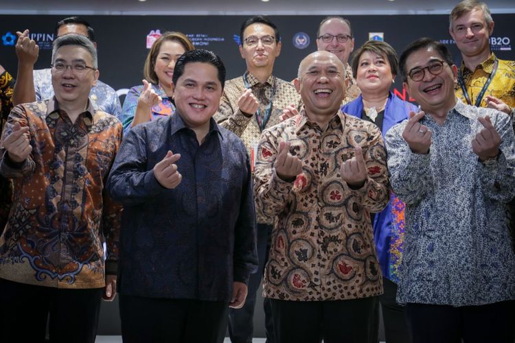 Menteri Koperasi dan Usaha Kecil Menengah (MenKopUKM), Teten Masduki; Menteri BUMN, Erick Thohir; dan jajaran Himpunan Peritel dan Penyewa Pusat Perbelanjaan Indonesia (Hippindo) di Indonesia Retail Summit 2022 dan Hari Retail Modern Indonesia 2022 di Sarinah, Jakarta, Senin (15/8/2022).(Dok. KemenKopUKM)