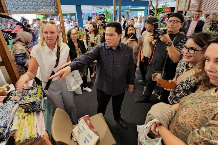 Erick Thohir (kedua kiri) berkunjung di Roemah BUMN yang ada di Tong Tong Fair 2022 di Den Haag, Belanda akhir pekan lalu