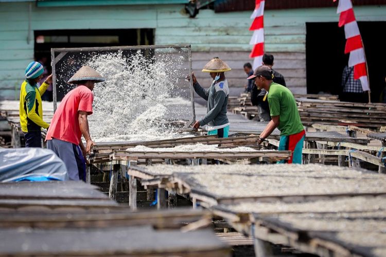 Masyarakat mengolah hasil laut di Kabupaten Buton Tengah, Sulawesi Tenggara.