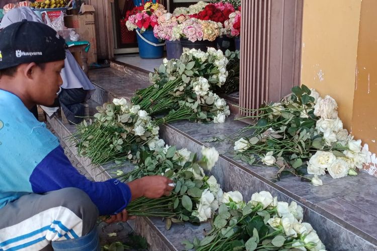 Salah satu pegawai Andira Rose sedang memilah bunga mawar yang akan dikirim ke Jakarta, pada Senin (12/9/2022).