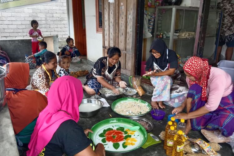 Nurhasunah, perintis usaha Tunah Food bersama warga sekitar sedang membuat produk.