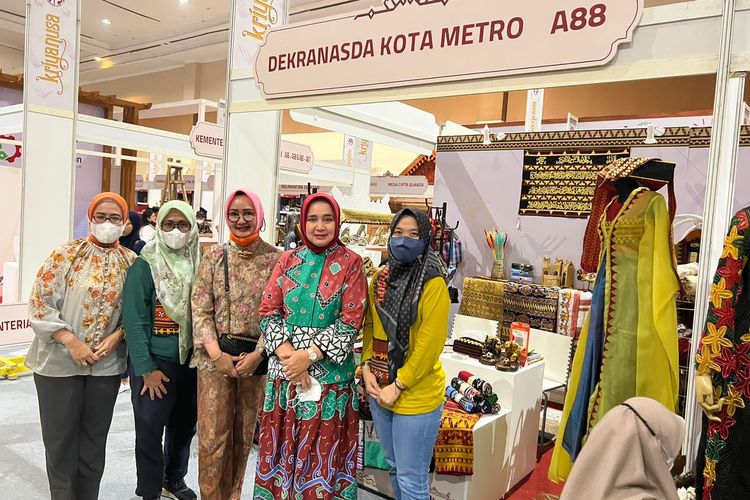 Stan Kota Metro pada Pameran Kriya Nusa 2022 di Jakarta, Rabu (21/9/2022). Sejumlah istri pejabat negara memborong kerajinan kain tapis produksi UMKM lokal