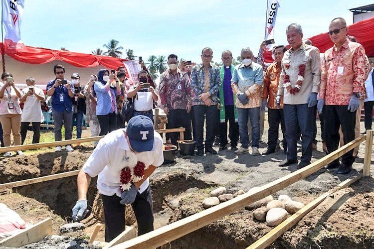 Menteri Koperasi dan UKM (MenKopUKM) Teten Masduki meletakkan Batu Pertama Rumah Produksi Berrsama (RPB) Produk Kelapa di Kabupaten Minahasa Selatan, Sulawesi Utara pada Jumat (23/9/2022).