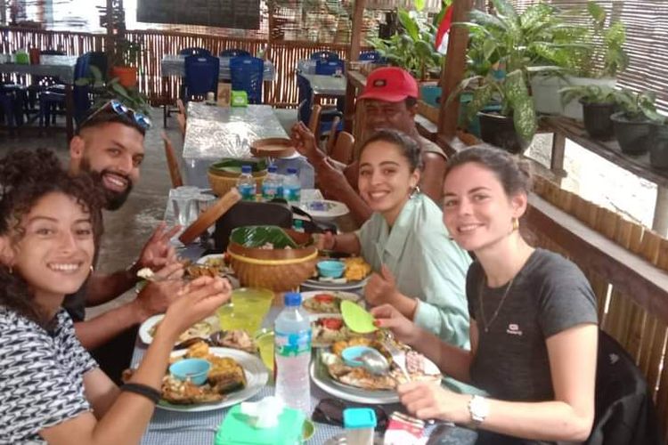 Sejumlah wisatawan mancanegara sedang menikmati makanan di Restoran Chembos di Kota Borong, Ibukota Kabupaten Manggarai Timur, Nusa Tenggara Timur.