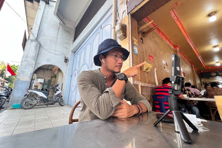 Konten kreator Firly Adhyatma Rusli (@firlyafro), sedang melakukan live di platform TikTok dalam rangka Kampanye Jelajah #SerunyaIndonesia, di Pemantang Siantar, Sumatera Utara, Rabu (10/8/2022). Selama penjelajahan itu, para kreator akan mengeksplor destinasi wisata sekaligus mengajak audiens untuk jalan-jalan virtual melalui TikTok Live. (KOMPAS.com/MUTIARA BERTHA)