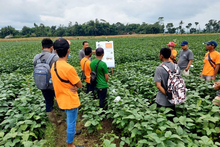 Sejumlah petani mengikuti asistensi teknis oleh PT GMIT dalam merawat tanaman edamame
