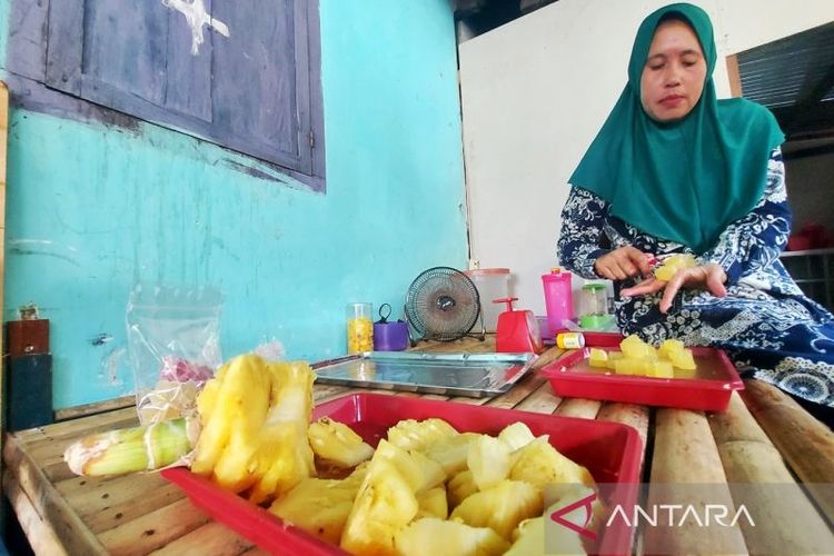 Pelaku UMKM di Wakatobi, pemilik merek dagang Mekar Bahari Royani Kadir membuat dodol rumput laut rasa nanas.(dok Antara)