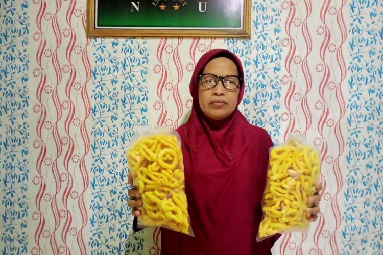 Siti Fatimah (52) adalah salah satu warga Desa Brunosari Kecamatan Bruno, Kabupaten Purworejo, Jawa Tengah yang sukses memproduksi lanting, salah satu makanan khas Purworejo. (KOMPAS.com/BAYU APRILIANO)