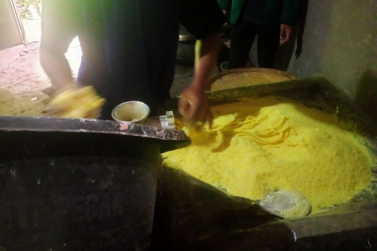 Proses pembuatan lanting di rumah produksi milik Siti Fatimah di Desa Brunosari, Kecamatan Bruno, Kabupaten Purworejo, Jawa Tengah.