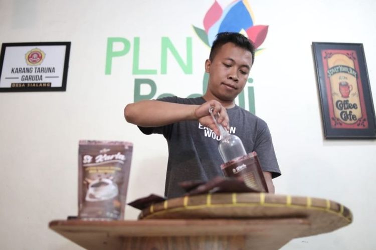 Anggota Karang Taruna Garuda sedang mengolah Kopi Si Karta) yang mulai populer di kalangan penikmat kopi di Kabupaten Deli Serdang.