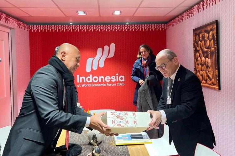 Menteri Koperasi dan Usaha KecIl Menengah, Teten Masduki melakukan pertemuan dengan Magdi Batato, Chief Operating Officer Nestle Global di sela-sela agenda peresmian Pavilon Indonesia dalam event pertemuan World Economic Forum yang dihadiri 51 Kepala Negara di Davos, Swiss, Rabu (18/1/2023), (Dok. KemenKopUKM)