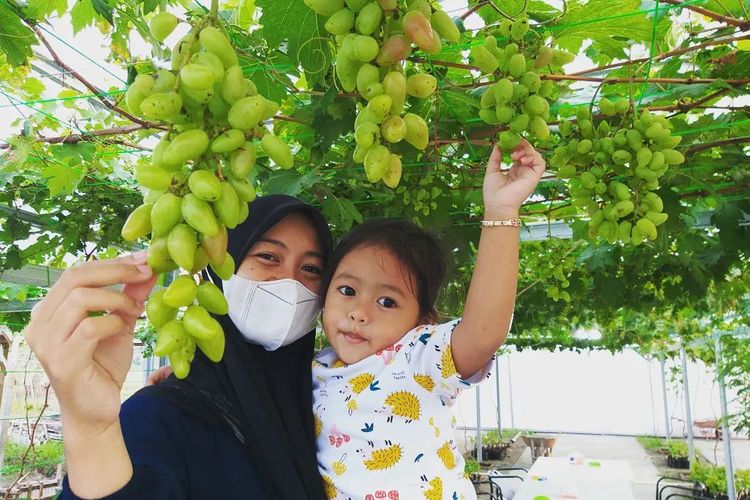 Warga mengunjungi Dusun Sabin @dusunsabin yang berarti dusun yang terletak di tengah persawahan di Desa Megulungkidul, Pituruh, Purworejo, Jawa Tengah. Oleh pihak bumdes, tempat tersebut kemudian dijadikan kafe yang dilengkapi gazebo dan taman anggur.()
