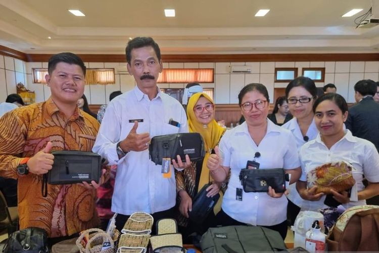 Kabid UMKM Dinas Koperasi UMKM Perindustrian dan Perdagangan (Diskoperindag) Kabupaten Cianjur, Epra Haryono (mengenakan batik paling kiri) bersama pelaku UMKM Cianjur.()