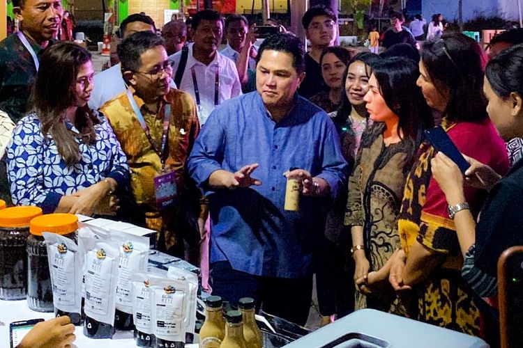Menteri BUMN Erick Thohir saat berkunjung di booth UMKM binaan BNI di sela-sela KTT ASEAN di Labuan Bajo