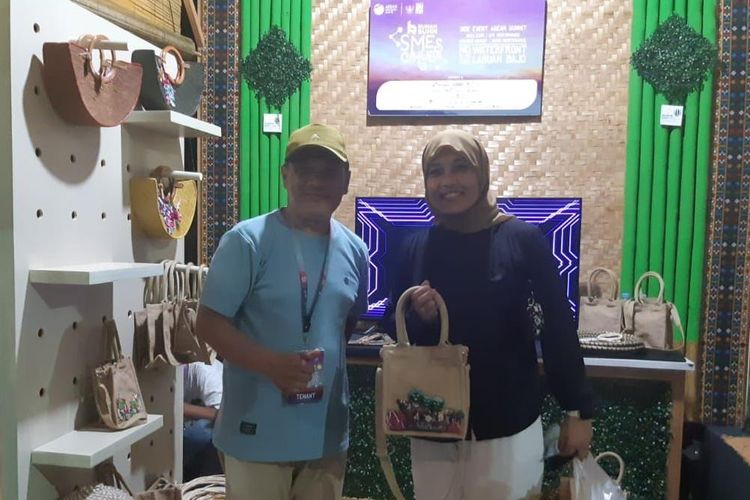 Cocos Trisada dari Iranty Design, pelaku UMK dari Kebumen, Jawa Tengah, yang turut hadir di ajang KTT ASEAN 2023 dengan aneka produk kerajinannya. Cocos Trisada merupakan pelaku UMK binaan Kementerian Koperasi dan UKM (KemenKopUKM) memproduksi kerajinan dari bahan bambu, eceng gondok, dan mendong (semacam rumput liar) bersama masyarakat yang tergabung dalam kelompok perajin.(Dok. KemenKopUKM)