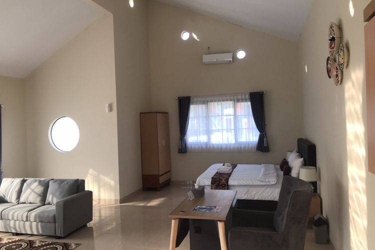 Kamar homestay dengan konsep arsitektur jengki di kawasan Balai Perekonomian Desa (Balkondes) Wringinputih, Kecamatan Borobudur, Magelang, Jawa Tengah pada Selasa (25/7/2023). Balkondes Wringinputih dikelola oleh Badan Usaha Milik Desa (BUMDes) Wringinputih dan diprakarsai oleh PT. Pertamina pada tahun 2017.(KOMPAS.com/WAHYU ADITYO PRODJO)