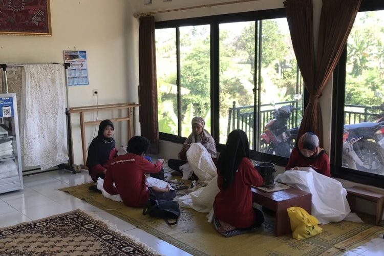 Anggota Sanggar Inspirasi Karya Inovasi Difabel (Sriekandi Patra) sedang membatik di workshop di wilayah Dukuh Penjalinan, Desa Tawangsari, Boyolali, Jawa Tengah pada Rabu (26/7/2023). Sriekandi Patra merupakan sanggar binaan PT. Pertamina Terminal BBM Boyolali untuk membuka jalan para difabel untuk berkarya lewat batik. PT. Pertamina Terminal BBM Boyolali menghadirkan program Difablepreneur lewat Sriekandi Patra untuk meningkatkan taraf hidup para penyandang disabilitas di Desa Tawangsari melalui sektor Usaha Mikro Kecil Menengah (UMKM) Batik.
