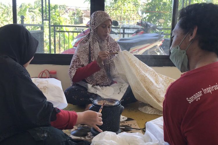 Anggota Sanggar Inspirasi Karya Inovasi Difabel (Sriekandi Patra) sedang membatik di workshop di wilayah Dukuh Penjalingan, Desa Tawangsari, Boyolali, Jawa Tengah pada Rabu (26/7/2023). Sriekandi Patra merupakan sanggar binaan PT. Pertamina Terminal BBM Boyolali untuk membuka jalan para difabel untuk berkarya lewat batik. PT. Pertamina Terminal BBM Boyolali menghadirkan program Difablepreneur lewat Sriekandi Patra untuk meningkatkan taraf hidup para penyandang disabilitas di Desa Tawangsari melalui sektor Usaha Mikro Kecil Menengah (UMKM) Batik.