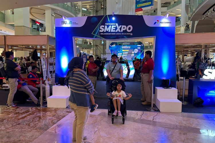 Pengunjung memadati acara Pertamina Small Medium Enteprise Expo (SMEXPO) 2023 di Mal Gandaria City, Kebayoran Lama, Jakarta, Sabtu (4/11/2023). Pertamina SMEXPO 2023 mengangkat tema ?Melangkah dari Lokal ke Global? dan digelar secara daring dan luring di empat kota di Indonesia. Sejumlah produk buatan penyandang disabilitas dipamerkan dan dipromosikan dalam pameran Pertamina SMEXPO 2023.(KOMPAS.com/WAHYU ADITYO PRODJO)
