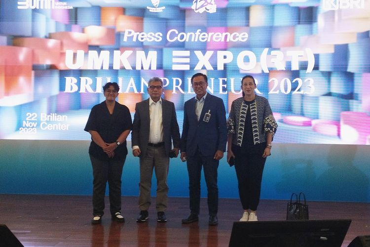 Konferensi Pers yang menghadirkan Direktur Utama BRI Sunarso; Direktur Bisnis Kecil dan Menengah BRI Aman Sukriyanto; Lead Kurator BRILIANPRENEUR 2023 Diana Nazir; dan Co-founder Havilla Tea Ajeng Respati Hapsari