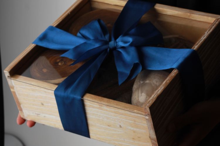 Salah satu produk yang dihasilkan oleh jenama Rubycraft berupa kotak hantaran atau hampers.
