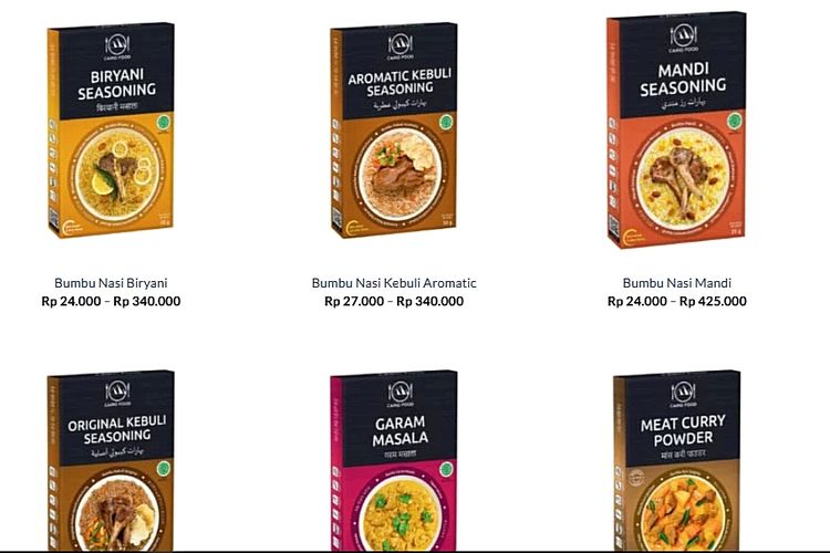 Harga jual produk bumbu masakan internasional di website resmi Cairo Food.