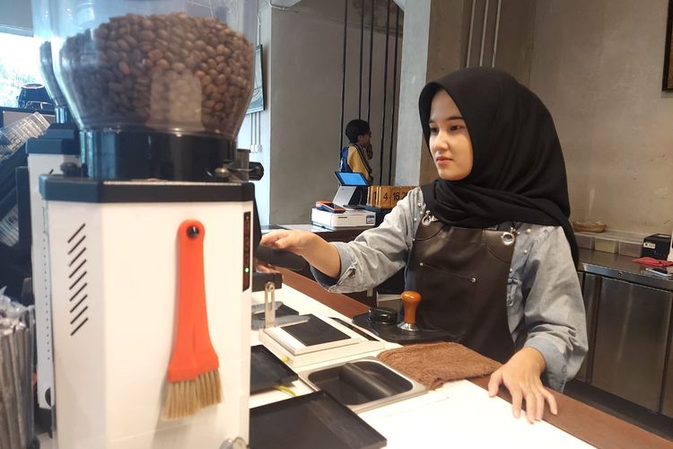 Karyawan di Kafe Ouwie sedang menyiapkan pesanan