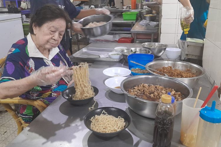 Padmawati Dharmawan, Owner dan Founder Bakmi Gang Kelinci, yang sedang meracik bakmi(Kompas.com - Ester Claudia Pricilia)