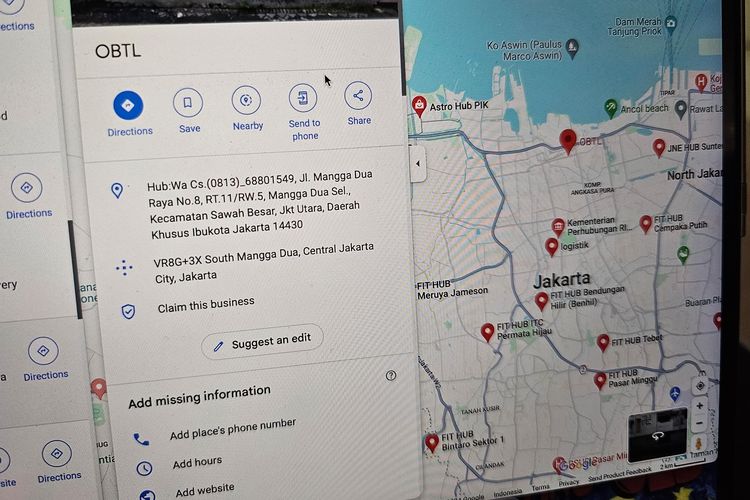 Salah satu contoh penipuan alamat dan nama jalan di Google Maps yang mencantumkan informasi nomor telepon palsu