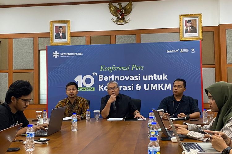 Plt. Deputi Bidang UKM KemenKop UKM, Temmy Satya Permana dalam konferensi pers : Inovasi Pembiayaan Untuk UMKM(Kompas.com - Anagatha Kilan Sashikirana)
