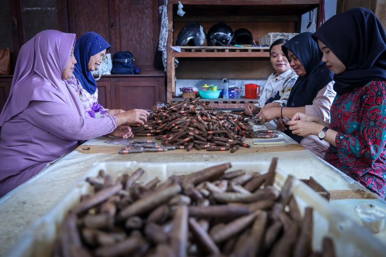 Pekerja di Pabrik Cerutu Rizona Baru, Temanggung, Jawa Tengah, Jumat (24/1/2025).